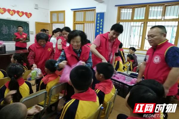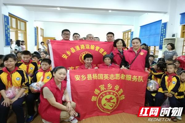 红网时刻常德5月30日讯(通讯员 周先兵) “陪伴你们一起成长,是我最幸福的事。”5月30日一大早,安乡县八旬道德模范、荣获湖南省优秀共产党员称号的杨国英奶奶带领安乡县杨国英志愿者服务队、安乡县运管志愿者服务队20名志愿者冒雨来到安乡县特殊教育学校,陪伴这里87名残障儿童提前过六一儿童节。连续十年,杨国英志愿者服务队己陪伴安乡特校的孩子们过六一儿童节。