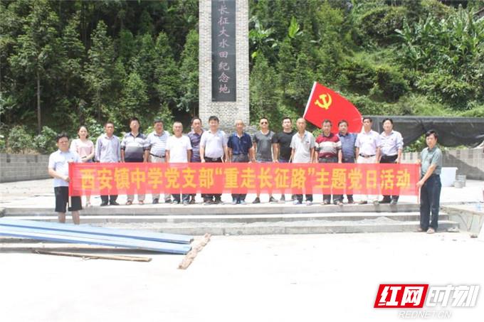 红网时刻常德7月2日讯(通讯员 周旭方) 7月1日,常德市桃源县西安镇中学的18名党员教师在支部书记邱振球的带领下,来到该镇大水田村红军长征纪念地开展“不忘初心,牢记使命,砥砺奋进,重走长征路”主题教育活动。通过“重走长征路”“重温入党誓词”“民主评议党员”等方式,回忆长征、纪念长征、重温历史,重觅红军足迹,热烈庆祝党的97岁华诞。