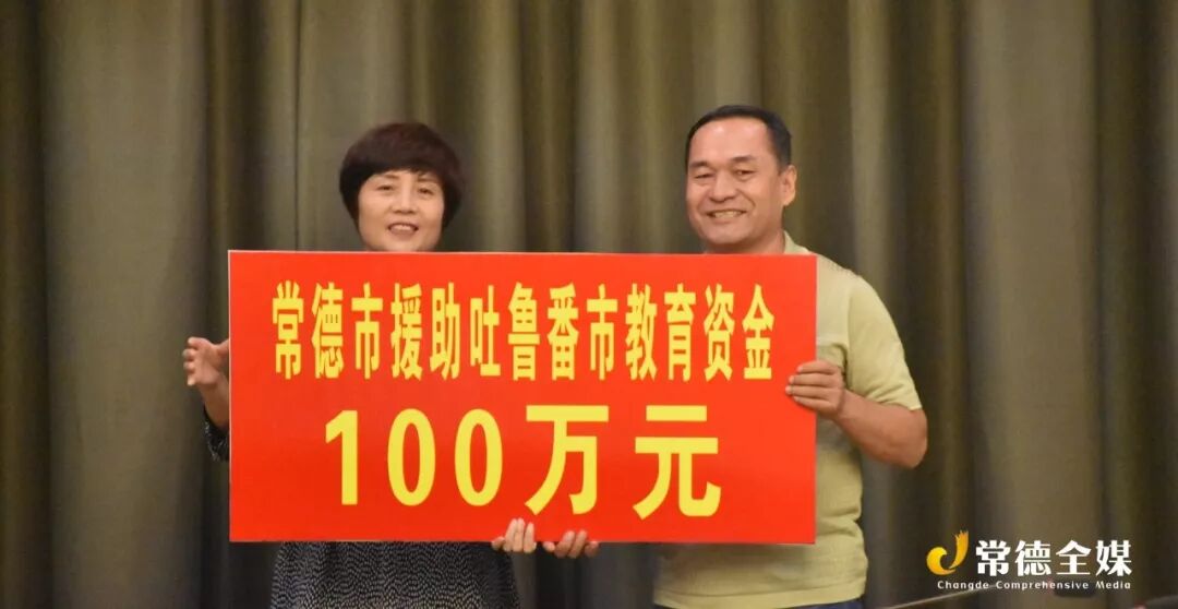 会上,常德市向吐鲁番市援助了100万元教育资金。