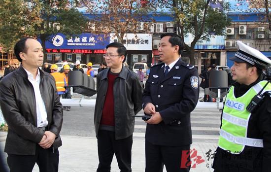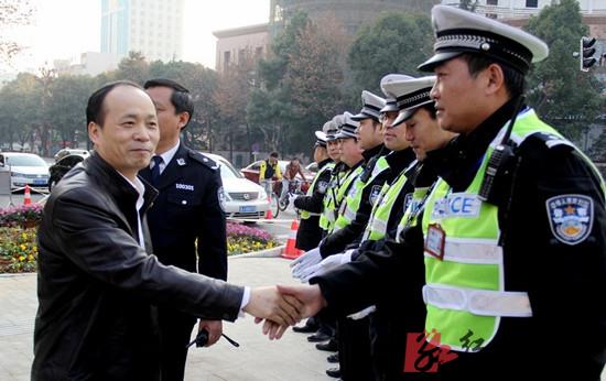 广大交通民警的付出和辛劳牵动着市委市政府领导的心。带着党委政府的关怀和广大市民的重托,市长周德睿一行来到了直属一大队辖区内交通最为繁忙的武陵大道宏大路口亲切慰问正在这里执勤的公安交通民警。周市长热情地向大家打招呼,一一与执勤民警们握手,祝福元旦新年快乐。周市长首先对民警们在“三改四化”路改保畅和交通秩序整治行动中的艰辛付出和敬业精神给予了充分的肯定,代表市委、市政府,向长期奋斗在一线的交通民警表示最真挚的谢意。同时,让民警们在认真工作的同时要保重身体。周市长指出,2014年春运工作即将开始,交通管理压力很大,希望民警们继续发扬敢打硬仗、连续作战的工作作风,克服长期应战带来的疲劳等实际困难,坚守岗位,认真履责,切实维护好路改新道路条件下的城区交通秩序,为常德这座文明城市创建一个崭新的城区道路交通环境。