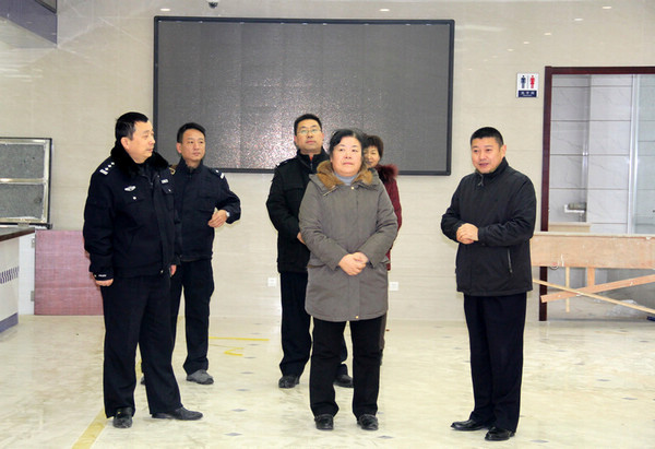 在大队新院,直属一大队大队长张建平、副大队长曾庆强首先简单向虹宇政委汇报了大队新院建设以及整体迁入准备工作情况。在大队领导的陪同下,虹宇政委先后来到服务大厅、事故处理中队、办公大楼和生活楼。每到一处,政委都详细了解新院各个功能分区情况,提出自己的意见建议。在服务大厅,政委对大厅的布局合理和设计前瞻性给予了满意评价。在事故处理中队,看到备勤室、办公室、案情分析室、询问室、讯问室、信息采集室、醒酒约束室、人民调解室、群众接待室等功能一应俱全,政委称赞连声说“设计合理,堪称一流,好!好!”在办公大楼,政委详细了解了每层办公室布局情况、查看了大楼一层大厅、档案室、荣誉室、分指挥中心、大会议室等建设布局情况。在大队生活楼,虹宇政委一一查看了机关食堂、民警公寓、民警健身设施,看到大队后勤服务保障建设不仅完善而且考虑精细周全后,虹宇政委满意的点头称赞。