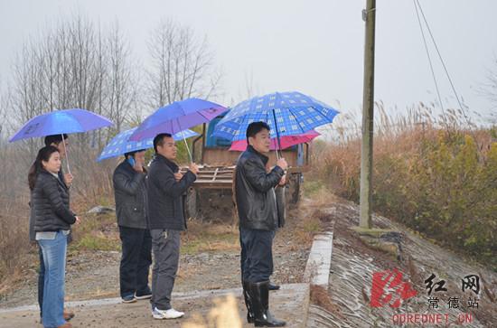 红网常德站1月7日讯( 通讯员 杨杰) 1月6日上午,桃花源旅游管理区主要负责人、桃花源风景名胜区管理局党委书记、局长杨俊冒着细雨,深入考察桃花源水利、农业工作。区领导何志祥陪同。