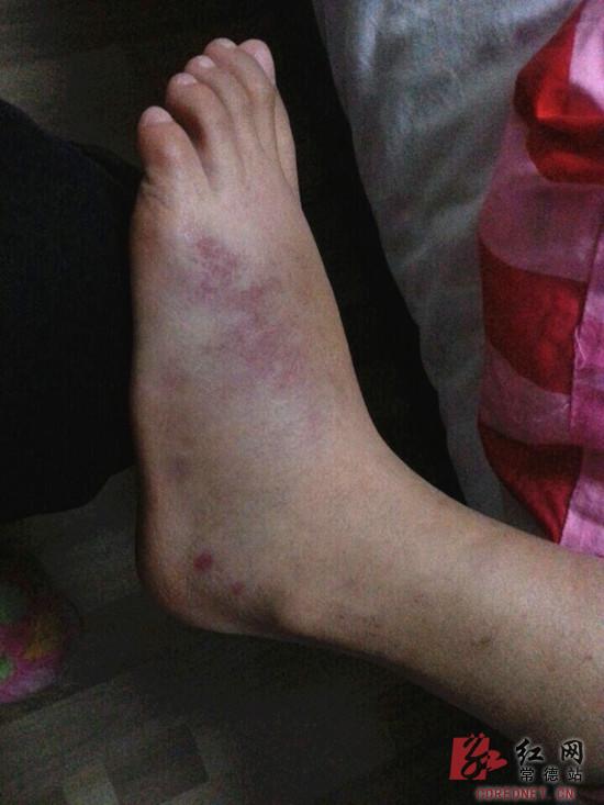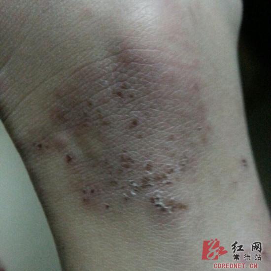 12月13日,史明带着女儿史玲再次去了常德市口腔医院复诊,回来之后,史玲全身瘙痒红肿。“当时,史玲的脚都开始肿了,很严重,像包子一样。”