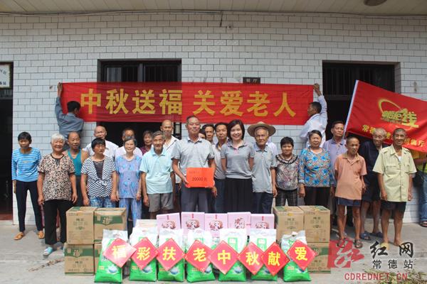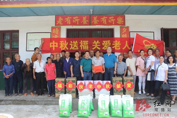 9月9日-14日,市民政局副局长沈英琼、市福彩中心主任颜峰陵带领常德“善行福彩”志愿队成员及市建设路中福在线销售厅的工作人员,到安乡县三岔河镇敬老院等7个敬老院开展节日慰问活动,为每个敬老院送去了2万元现金和价值5千元的米、面、油、月饼等慰问物资。