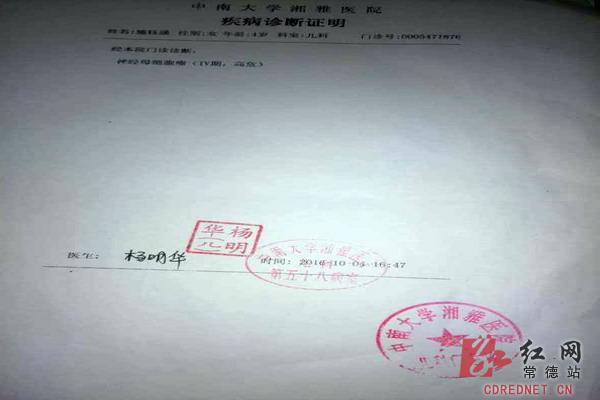 8月下旬,在广东打工的施德军夫妻俩闻讯女儿生病后,辞工返乡。8月29日,夫妻俩带着女儿到安乡县人民医院检查,由于病情严重,医生建议转上级医院治疗。8月30日赶到长沙市中南大学湘雅医院检查,经过B超、骨扫、腰穿、骨穿、核磁共振等一系列检查,确诊为神经母细胞瘤四期高危。面对从未听说过的重症,夫妻俩到医院洗手间里抱头痛哭。