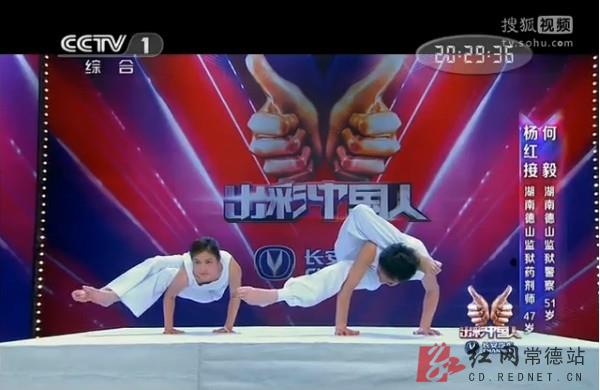 红网常德站3月3日讯(记者 朱志姣)“我爱瑜伽,也爱家。”何毅的“幸福宣言”感动了《出彩中国人》的评委和观众。3月2日晚,德山监狱狱警何毅、杨红接夫妻在央视《出彩中国人》舞台上惊艳亮相,两人表演瑜伽秀夫妻恩爱,并凭借默契的配合和由此散发出来的幸福感打动了现场的评委和全体观众,李连杰、周立波、蔡明三位评委一致给出“出彩”,何毅、杨红接成功晋级半决赛。