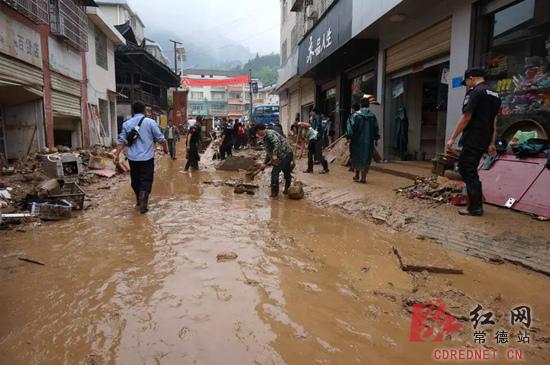 暴雨导致桃源部分乡镇街道被洪水淹没。