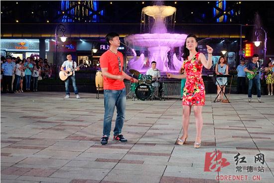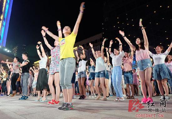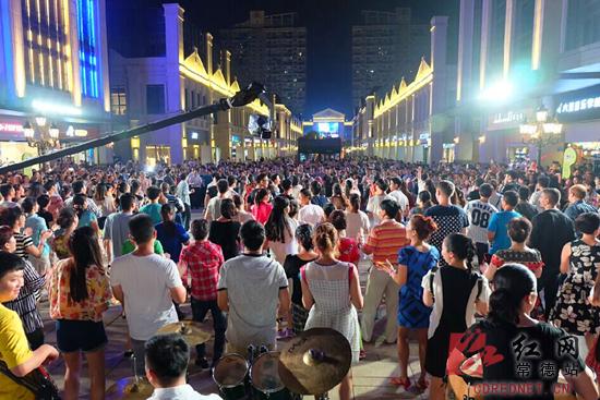 红网常德站6月6日讯(记者 郑江晖 摄影 陈自德)小女孩向街头表演者投了一枚硬币后,悠扬的小提琴声慢慢响起,随之一场华丽的街头音乐会徐徐展开……昨晚,在常德市武陵阁步行城的中央喷泉处,百名音乐爱好者表演了一场街头快闪,吸引了上千市民围观参与。