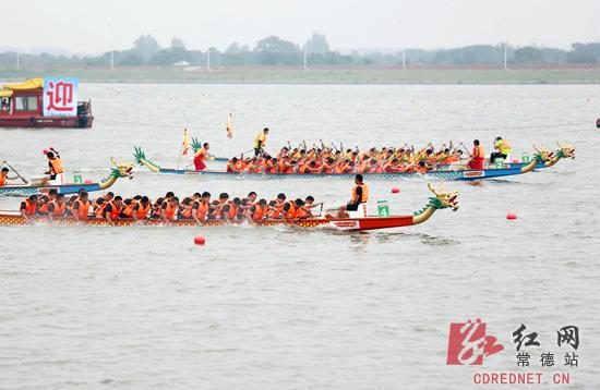 上午9点,柳叶湖畔,人潮涌动,一派浓浓的节日气氛。随着一声清脆的发令枪响,平静的湖面上,龙舟贴水疾行,鼓点激越,桡桨齐发,岸边呐喊雷动,柳叶湖变成了一个欢乐的海洋。