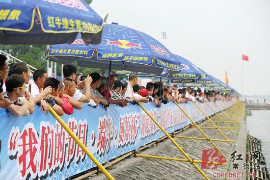 岸边观众为自己喜欢的队伍加油。