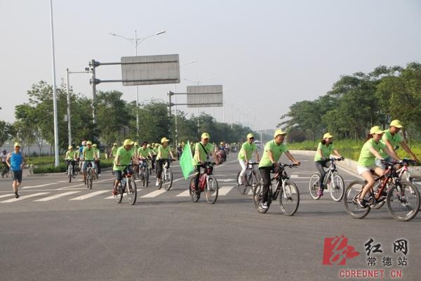 红网常德站6月6日讯(通讯员 周先兵) 从我做起,用自己的点滴努力去尽一份绿色的责任。6月5日早上8点不到,近千名身穿绿色服装的志愿者集结在湖南省安乡县步行街广场,参加由安乡县世纪环保行组委会、安乡县委宣传部主办,安乡县人大办、安乡县环保局,安乡论坛义工群、安乡县自行车协会、安乡县摄影家协会、安乡县手牵手义工协会、安乡县美利达骑行俱乐部等协办和参与的“改善环境质量,推动绿色发展”之“推进绿色发展、建设生态安乡”环保公益主题活动启动仪式。