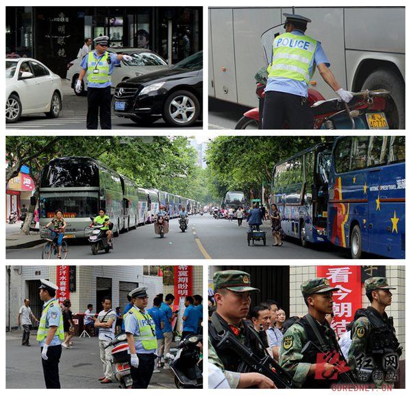 6月7日至8日高考期间,大队在常德市一中、七中两个考点周边道路增派警力,增设禁鸣、禁行标志,强化管理,确保考点500米范围内无机动车辆违法鸣号、违法停放现象。高考两天7:30-11:30、14:00-17:00,大队对常德市一中和七中两个考点周边的育才东路(武陵大道与育才路交叉路口东端至朗州路与育才路交叉路口西端)以及人民西路(龙港路口至芙蓉路口)实行交通管制。同时,考试期间,大队将对所有接送考生车辆、考务车辆的轻微交通违法行为,不扣车、不扣证,一律予以教育放行,尽可能为考生提供交通便利。大队事故处理中队成立了一个应急小组在大队辖区机动,对“涉考”车辆发生的交通事故的,特事特办、急办,确保交通畅通。高考期间,大队全体民警、协警提前1小时进入管制路段,清查路面、消除隐患、维护秩序、保证畅通。考试结束后,及时疏导指挥交通,保障考生出入考场安全,为广大考生营造了安全、安静的外部环境。