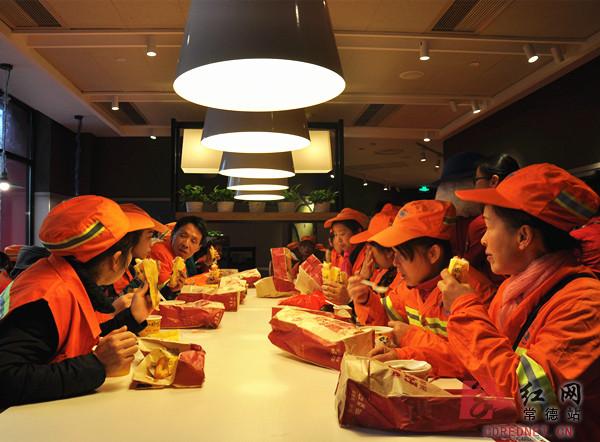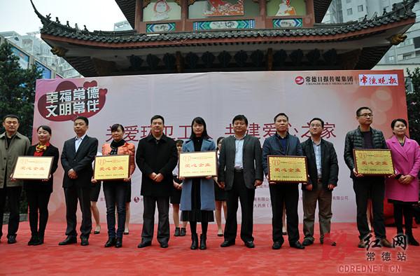 启动仪式现场,各爱心企业负责人向武陵区环卫处负责人递交爱心承诺书,主承办单位负责人向首批参与企业颁发“爱心企业”牌匾,肯德基水星楼店还为参加活动的环卫工人代表免费赠送100份营养早餐和价值近5000元的热饮劵。