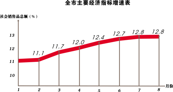前三季度,全市规模工业预计累计完成产值1522.6亿元,同比增长18.4%。预计累计完成增加值678亿元,同比增长10.5%;1至8月,全市规模工业实现主营业务收入919.78亿元,同比增长20.1%。实现利润38.95亿元,同比增长25%。1至8月,全市累计完成固定资产投资679.4亿元,同比增长35.1%,居全省第四位。全市全年共调度重点工程500个,年计划投资650亿元。