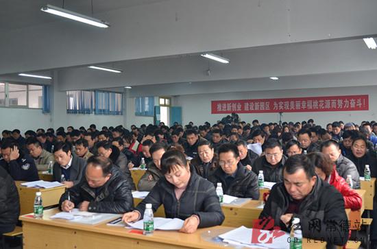 桃花源镇、桃仙岭办事处、常德市桃花源旅游开发投资集团有限公司、常德市桃花源景区经营管理有限公司、桃源二中班子成员、区直及市直分局全体机关干部、38个村(居)党支部书记、村长、湖南金固力油墨有限公司等工业企业代表共计300余人参加会议。