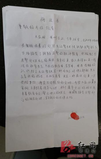 红网常德站12月2日讯 (通讯员 杨峰) 12月1日,常德高速警察河洑大队处罚室来了一位小伙吕某,来到处罚窗口首先递给民警的不是证件,不是开具的法律文书,而是自己手写的一份悔过书。