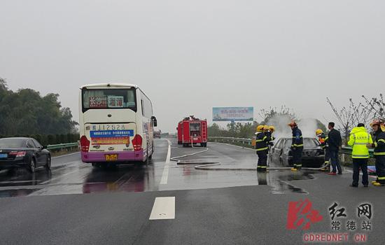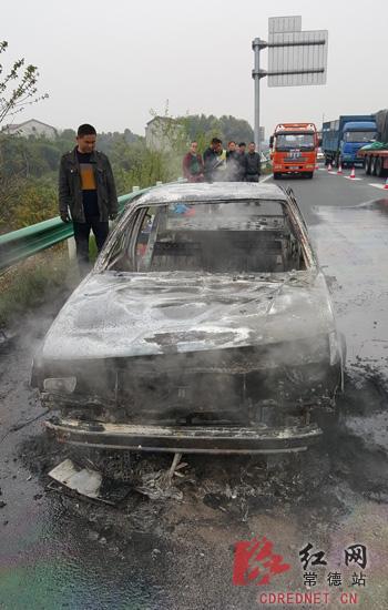 红网常德站3月24日讯(通讯员 杨峰 张碧凯)3月23日上午10时30分左右,常德高速交警支队接到报警,二广高速湖南段1913KM处由北往南方向一辆小车发生自燃,事故影响该路段行车秩序近半个小时,所幸无人员伤亡。