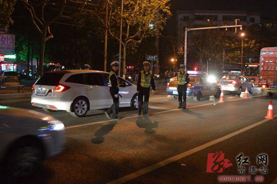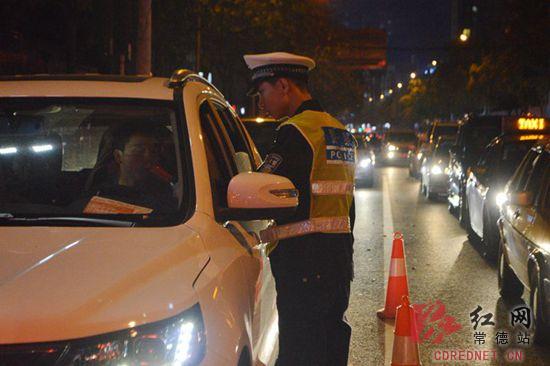 红网常德站4月20日讯(通讯员 马辉)为有效推进第二阶段“百日会战”酒驾整治行动,全力遏制因酒后驾驶引发的恶性道路交通事故,4月19日晚,常德交警直属二大队集中优势警力,立足本职,在辖区丹滨路口开展酒驾整治行动,继续保持对严重交通违法行为高压严管态势。