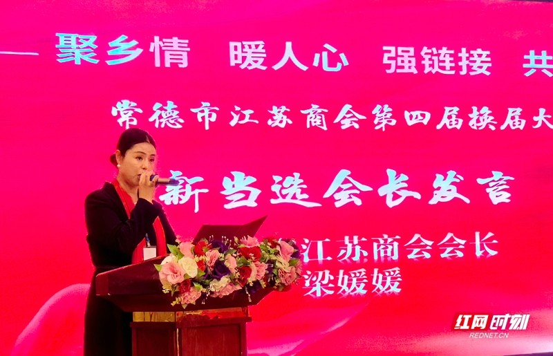 红网时刻新闻1月19日常德讯(记者 黄刚)1月18日下午,常德市江苏商会第四届第一次会员代表大会隆重举行。常德市工商联、民政局、社工部及省商会相关领导现场指导,商会会员、秘书处工作人员齐聚一堂,共商商会发展大计。经过选举,梁媛媛当选新一届商会会长。